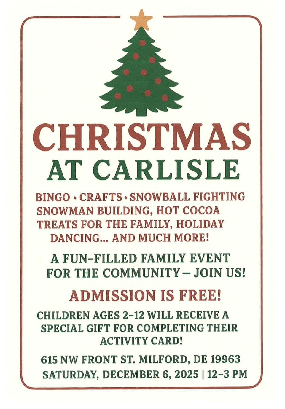 Saturday, December 6, 2025 @ 12-3pm